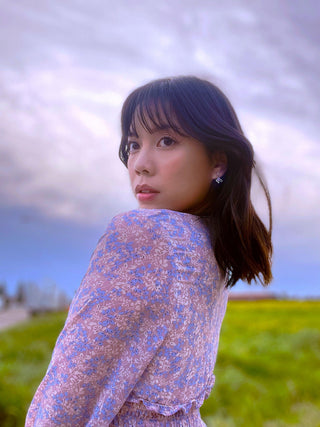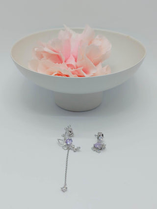 Das einzigartige Design der koreanischen Ohrringe "Blüte in der Abenddämmerung" Die Ohrringe "Blüte in der Abenddämmerung" sind einzigartig in ihrer Art. Jedes Paar koreanischer Ohrringe ist so gestaltet, dass es einen Übergang darstellt, wenn der Tag in die Nacht übergeht und die Natur eine tiefe und geheimnisvolle violette Farbe annimmt.