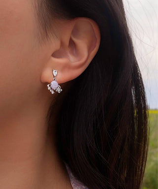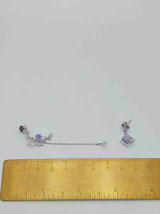 Das Design dieser koreanischen Ohrringe umfasst natürliche violette Steine, die die Farbe des Blühens im Sonnenuntergang widerspiegeln. Die Steine werden mit Schmetterlings- und Blumenformen kombiniert, die Unschuld, Schönheit und Transformation symbolisieren.