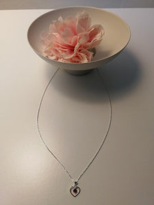 Sterling silver heart necklace with red zirconia stone